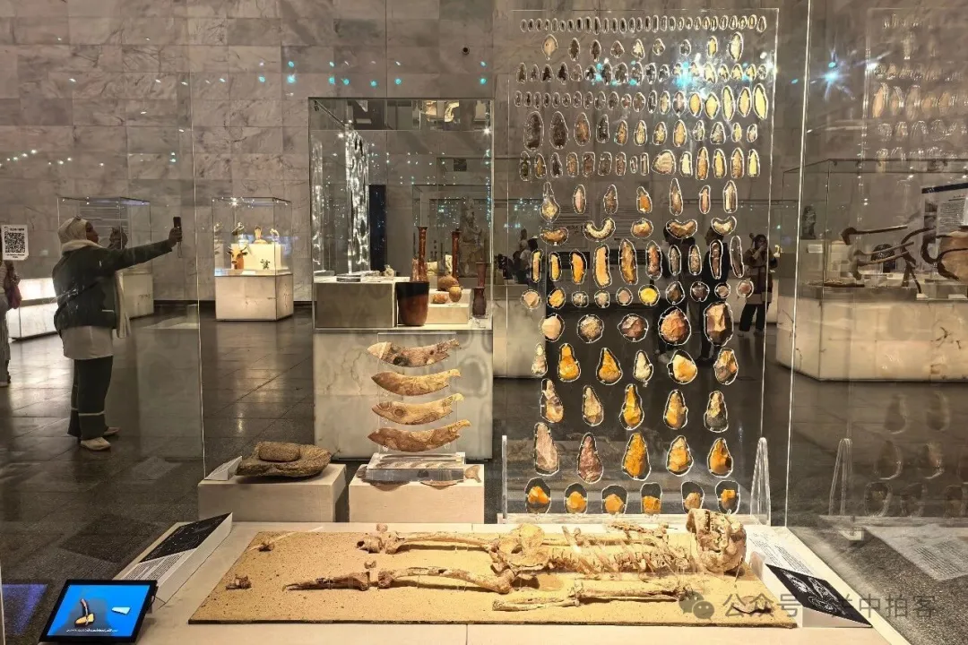 2025年11月21日晚上,我来到埃及文明博物馆,坐落于巨大的人工湖边。在迷人的夜色中,穿过宽阔的大道,走进金字塔外观的主展馆。这座博物馆的内部由日本建筑师矶崎新设计,既有古埃及传统的文化符号,也体现了现代建筑的科技感。