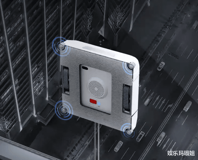 在无边框玻璃上使用时,它的边缘识别表现也比较稳,没有出现靠边就发慌的情况。遇到窗把手、窗锁这些凸起,会主动绕开再继续清洁,整个过程不会卡住或者中断。另外它机身还内置了一个600MAh的电池,这个是用于万一突然停电了,也能紧紧吸附在窗户上面25min,不用担心会突然断电然后砸落!