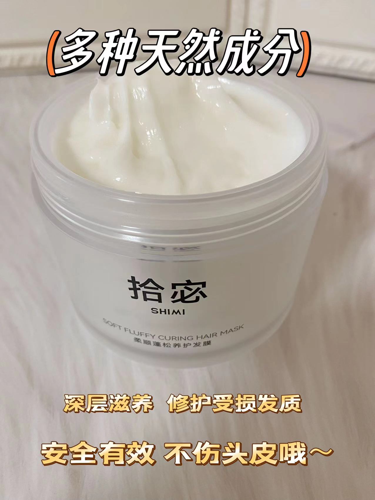 一开始我也以为那些宣称加了 “黑松露”“鱼子酱” 的发膜是护发神器,结果买回家才发现是概念性添加,实际含量低到没实效!结果头发越用越干,有所改善没了光泽,像枯草似的,真的踩大雷。与之不同的是,拾宓shimi发膜从不搞这些营销噱头,更注重安全和实打实的修护力。它是高端沙龙级免蒸发膜,安全有效,不伤头皮。多次烫染受损发质,也能深层修复受损,抚平毛躁的同时,减少干枯,改善分叉打结,让头发持久柔顺亮泽蓬松,效果一点不输 500 + 卡诗等大牌发膜!