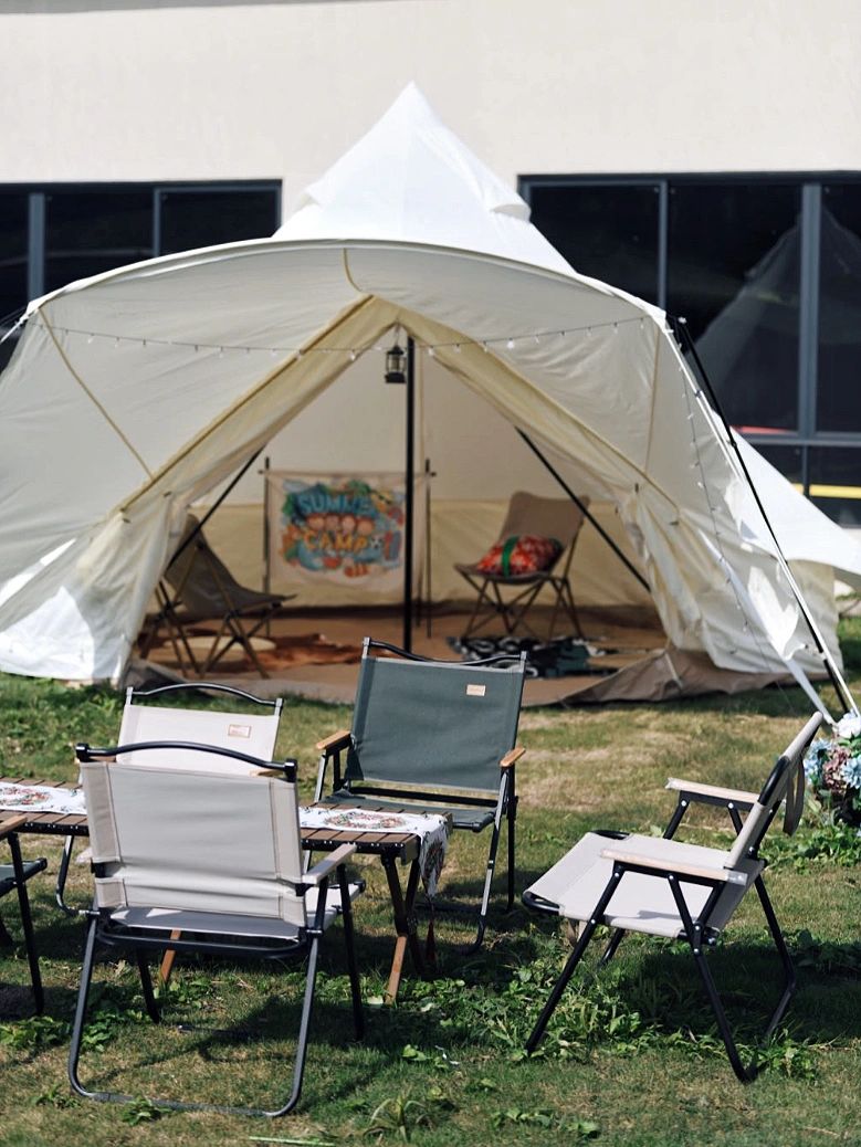 钓完鱼在露营天幕下叹茶打麻将