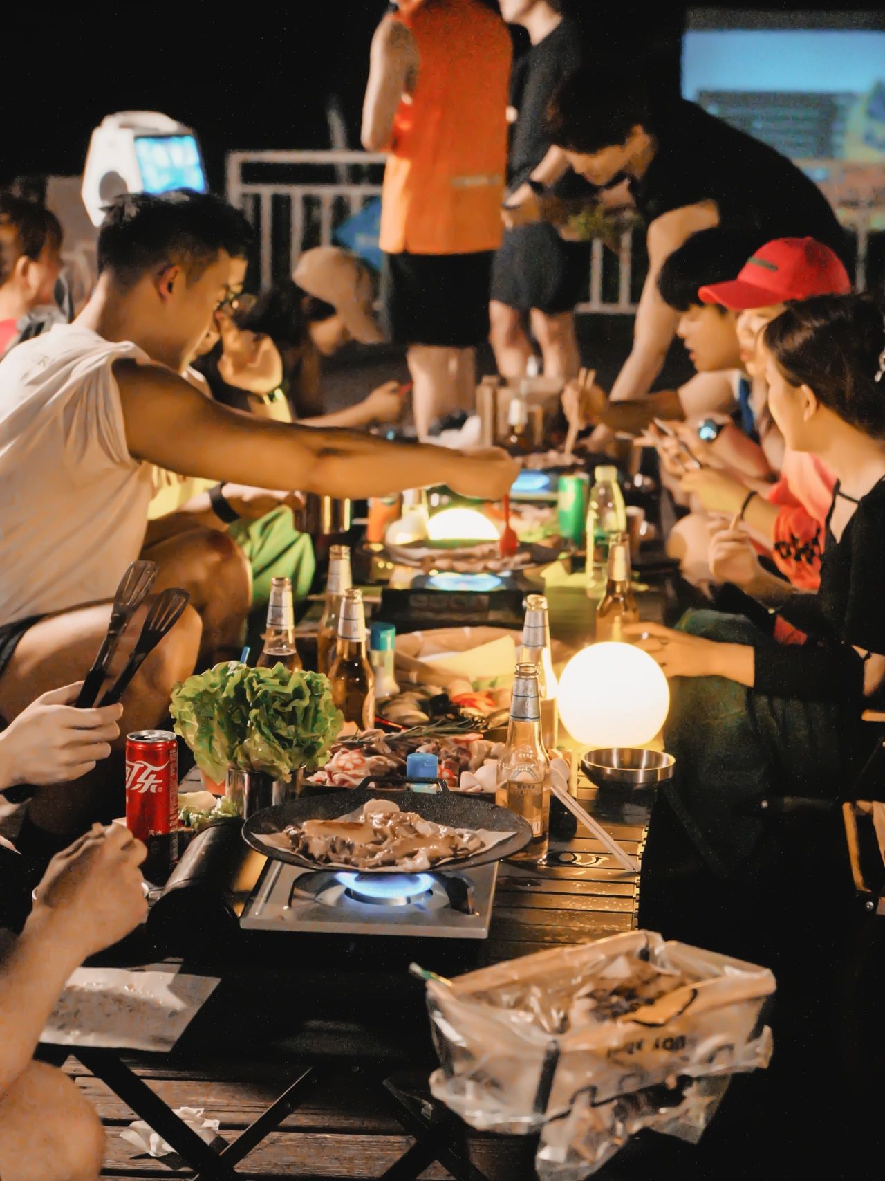 傍晚观看星空影院,享受BBQ盛宴,实属惬意