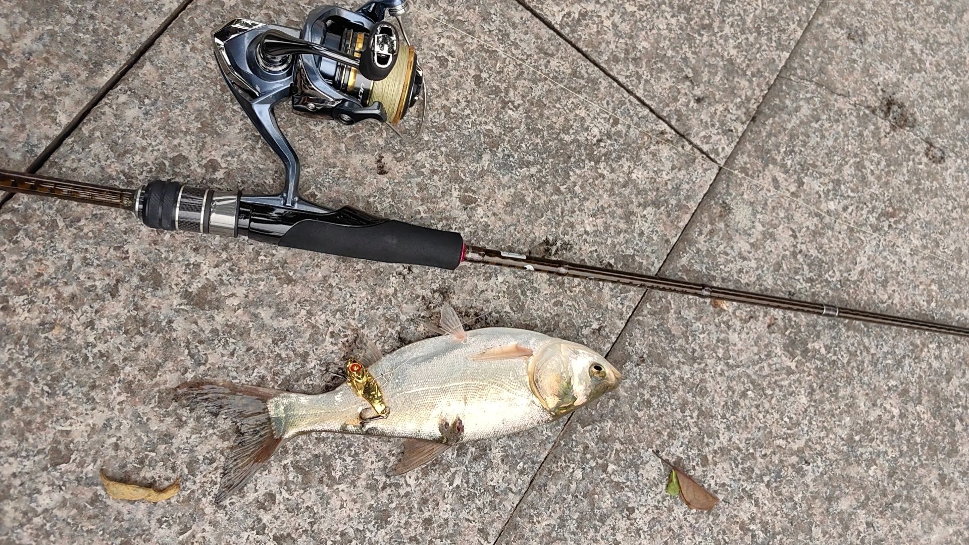 给你们试验过了花地河,晴天水清就用金色斜切亮片5克匀收加小抽 阴天水浑就用5.5克铅笔颤沉,今天5.5克铅笔主线断了跑了一条三斤左右的 嘴里还有铅笔跟很长一节线看到线在河里就直接锚🤣三斤左右的翘嘴就来了。 vib可以用5克的跳底注意可能会锚到鱼贴底匀收比较好一点。 定位在最后一张图,那个位置有个楼梯就在楼梯右边钓就行,对面水深鱼多涨水退水都可以钓。