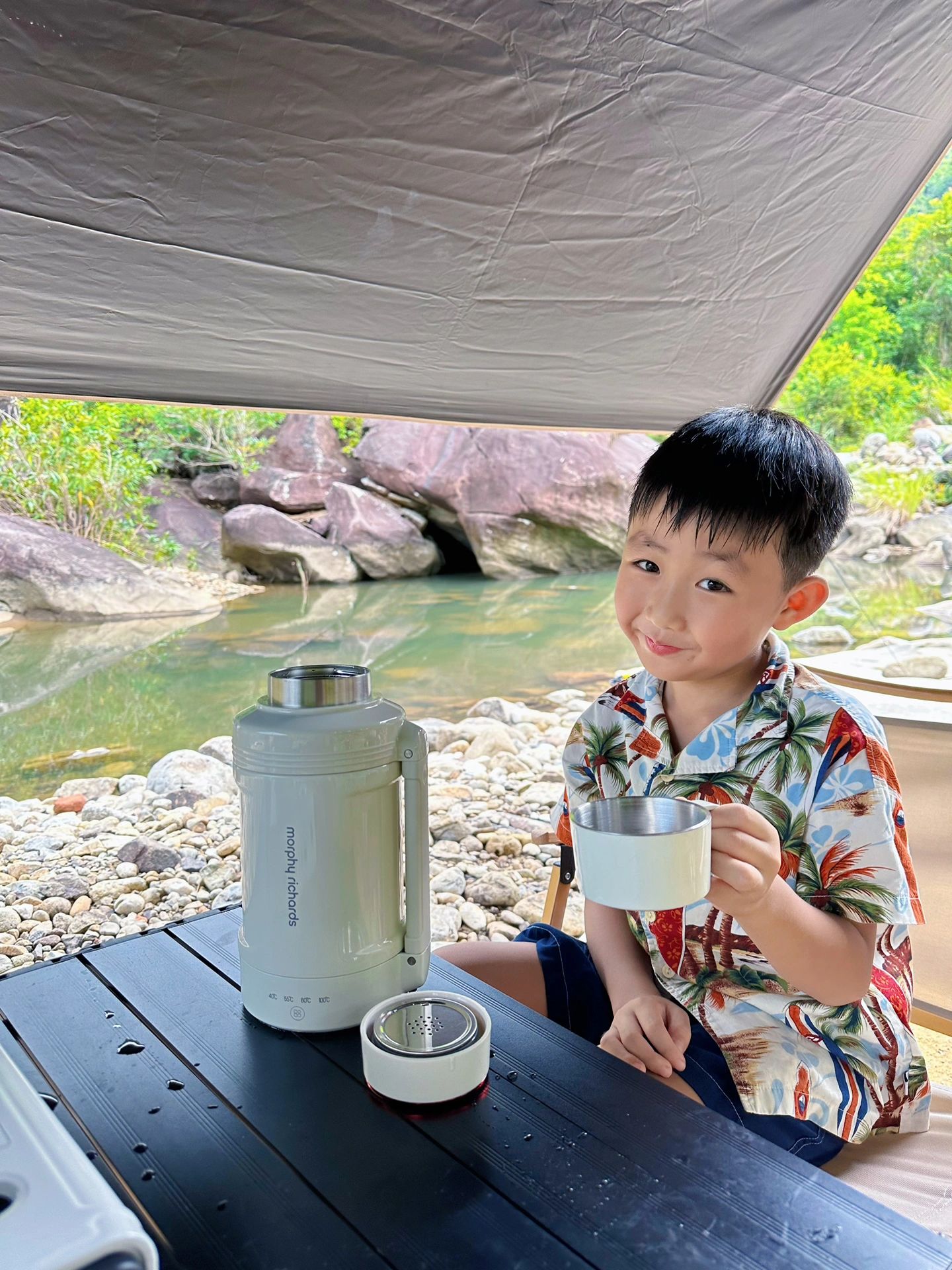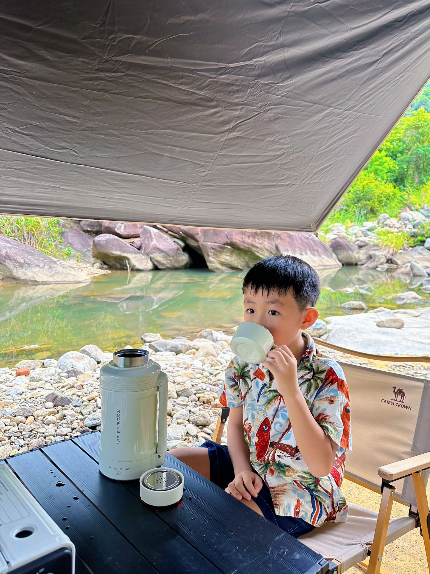 特别是山里的温度要相对凉一些,所以这段时间出门我们都给孩子以喝温水为主