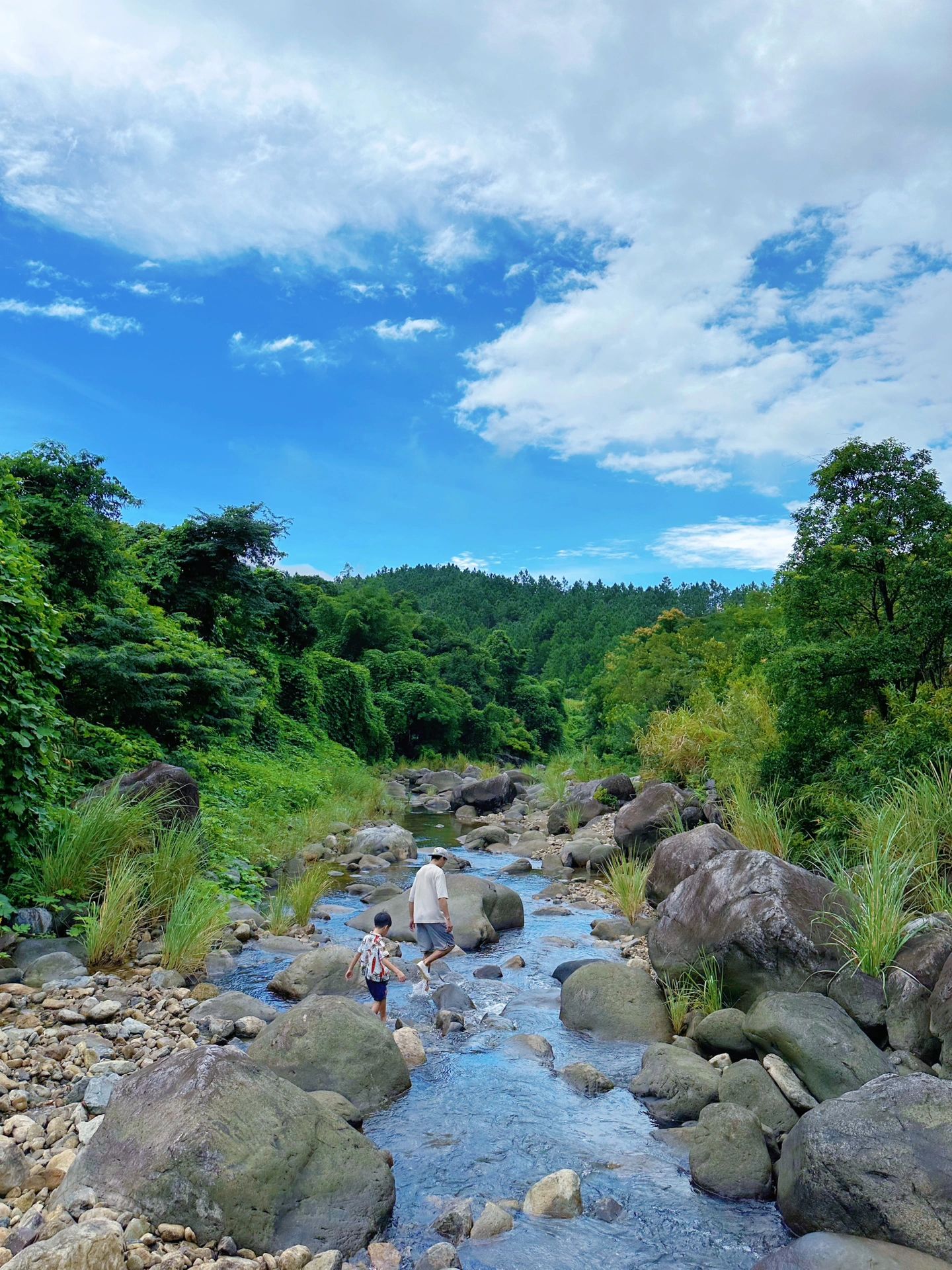 现在天气相对凉了一些,所以我们基本不下水泡了,就在溪流边踢踢水,玩一下~