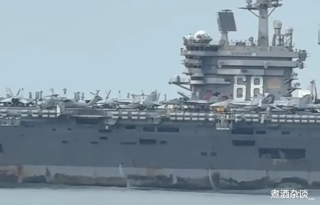 事件的基础是航母老化,尼米兹号服役50多年了,原本早该退役了。但是,美国航母捉襟见肘,尼米兹号被迫带病延役。这次在南海时,就有我方渔船近距离拍摄到尼米兹号航母,已锈迹斑斑(下图)。