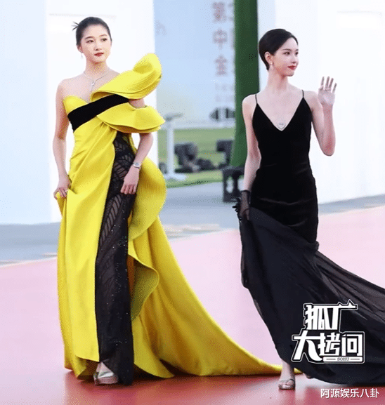 在逆行这条路上也是非常稳定发挥惹。陈都灵。如果陈都灵单独走红毯,你可能不会觉得特别惊艳。但当黑色深V丝绒修身礼服裙的陈都灵和大黄大黑的关晓彤携手走红毯时。优雅和轻盈都被双倍放大了。