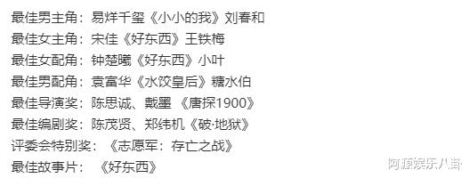 还拿下了最佳故事片。最佳导演给了陈思诚。最佳编剧给了《破·地狱》。