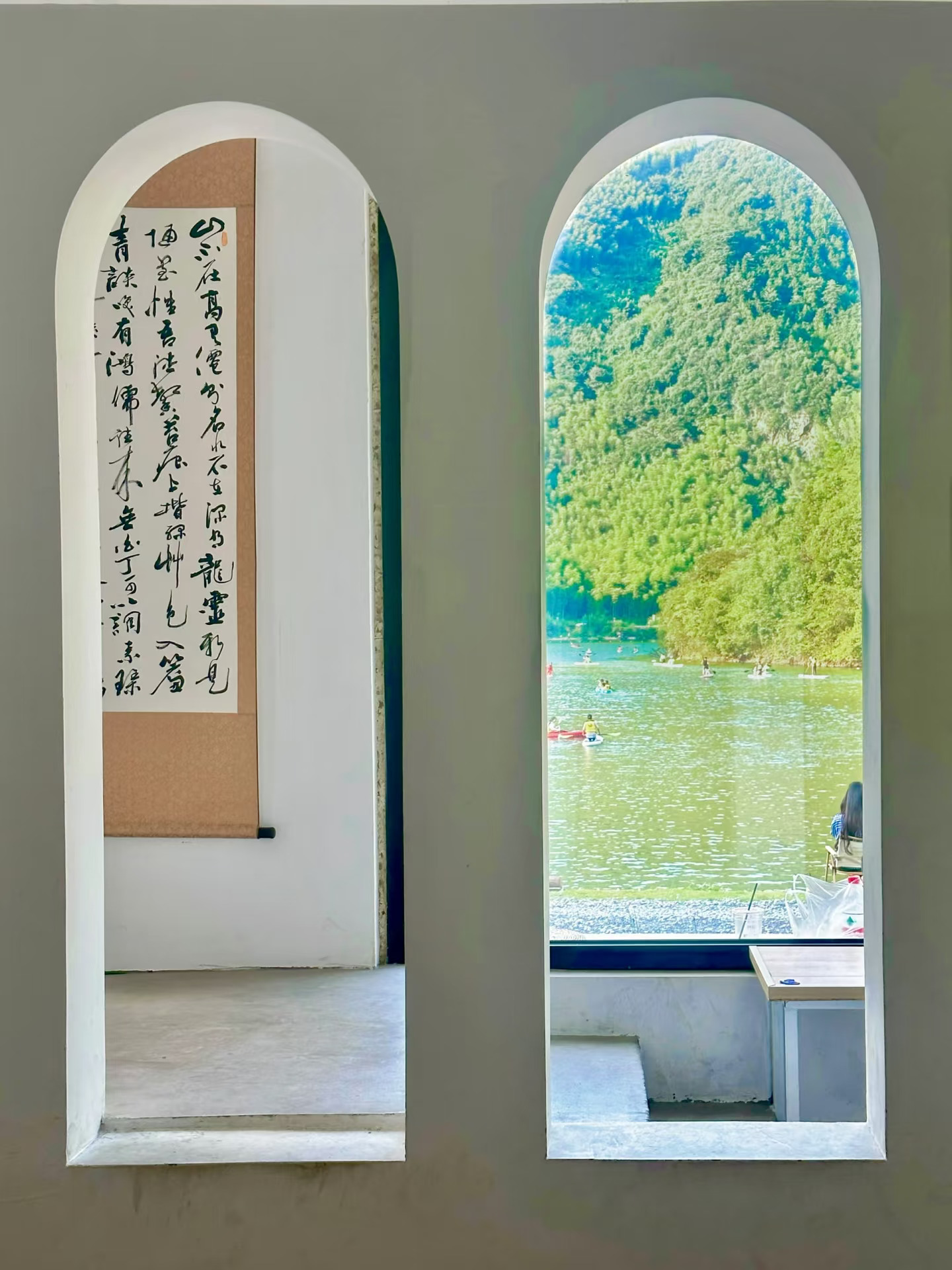 ✔️咖啡馆对面就是青山绿水、无边竹海,风景超赞,大窗户那边超适合拍照!