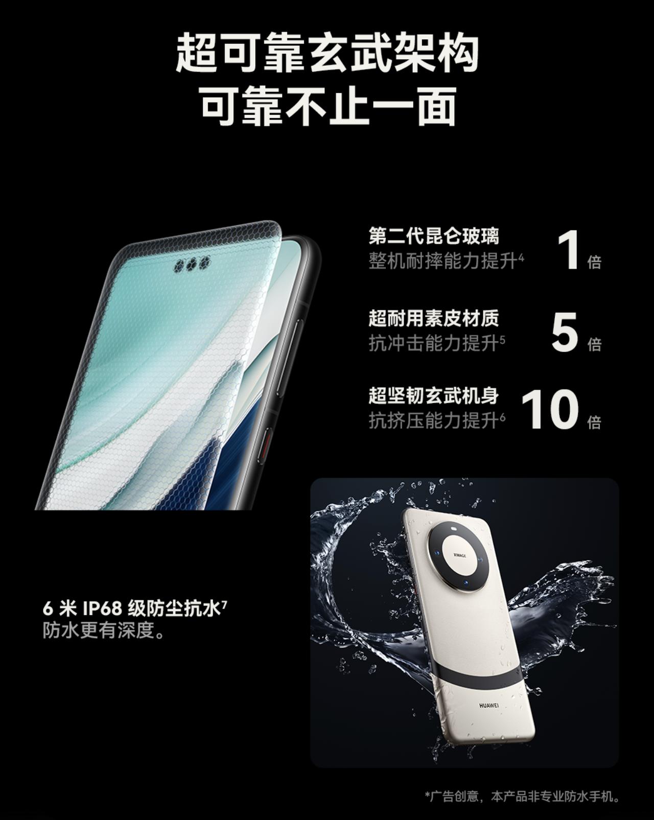 2、玄武架构:昆仑玻璃+素皮材质+玄武机身,支持6米IP68级防水