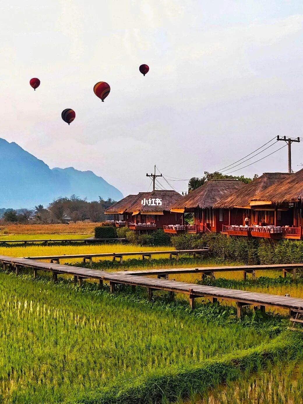 酒店门口就是玩皮划艇等户外运动的地方,但是酒店本身没有泳池,酒店租赁自行车要收费。稻田确实很漂亮,傍晚和早上还有热气球在空中。拍照非常出片