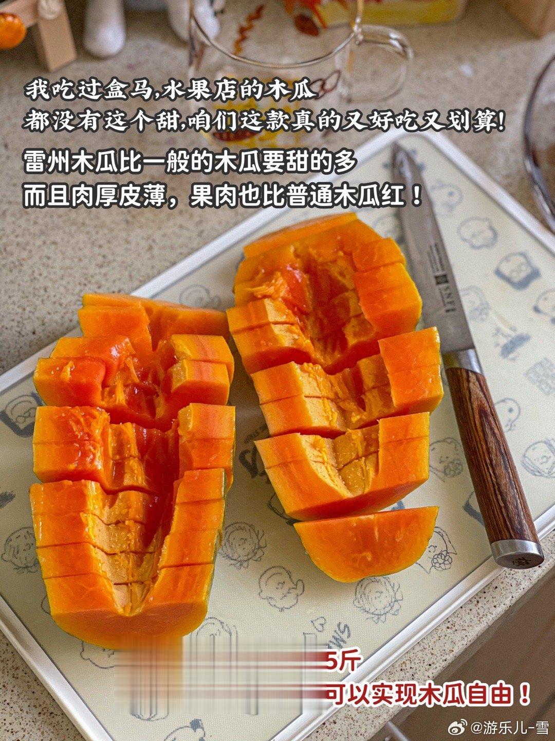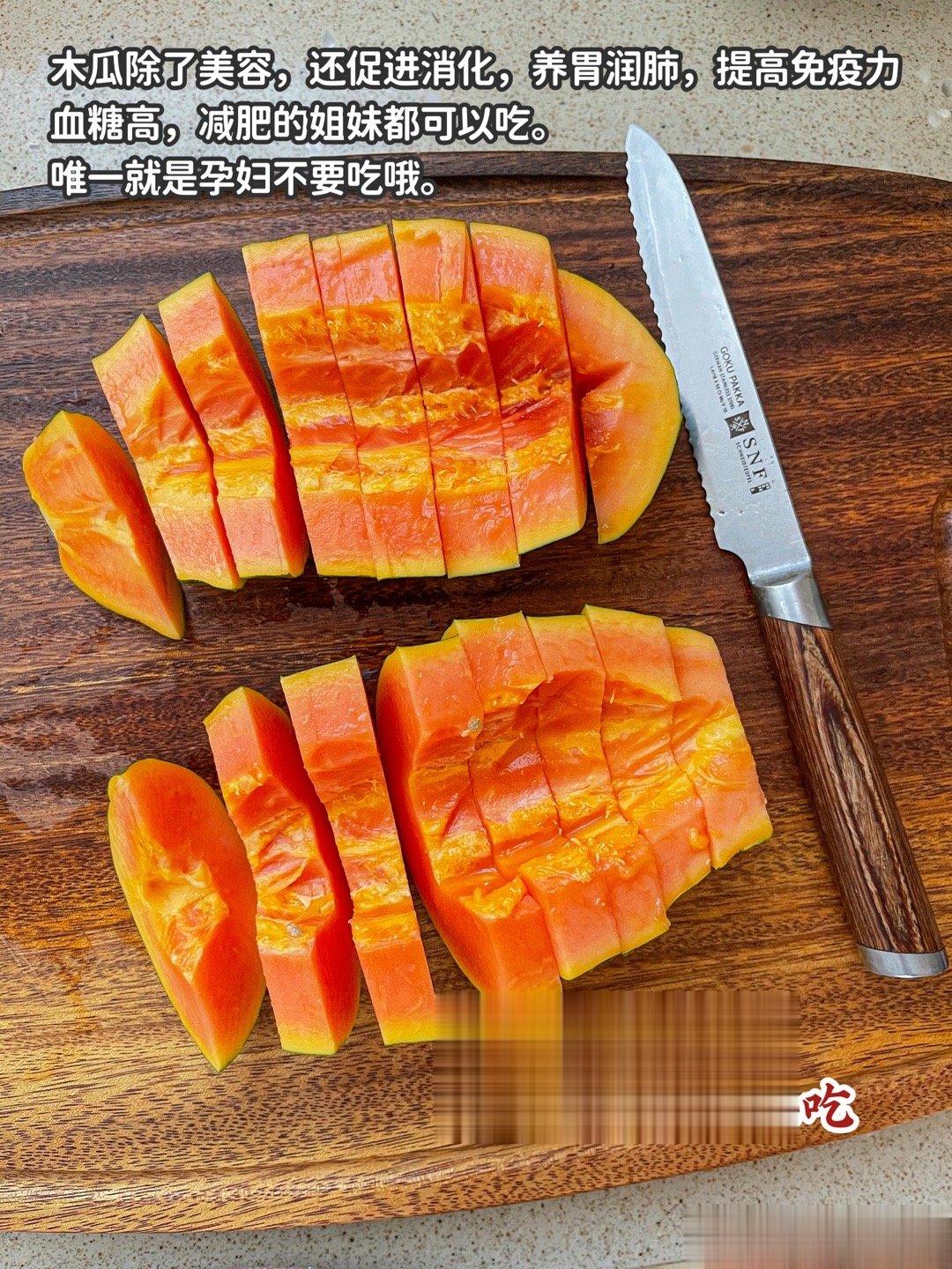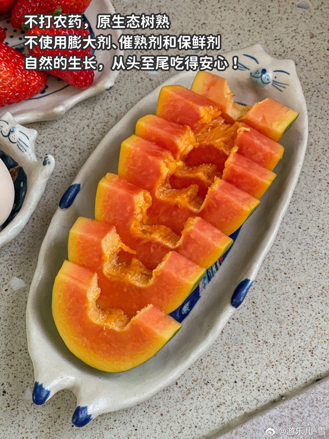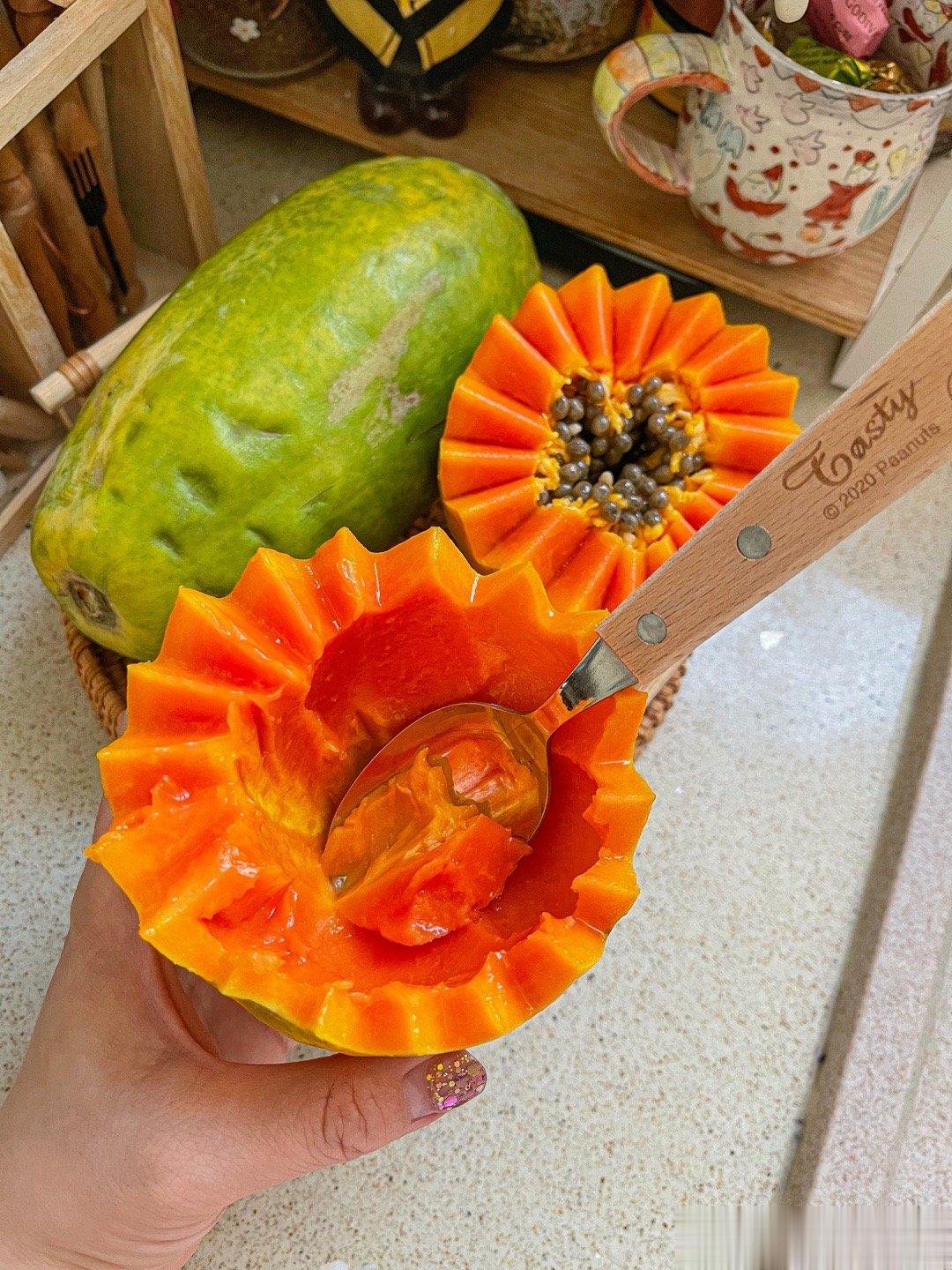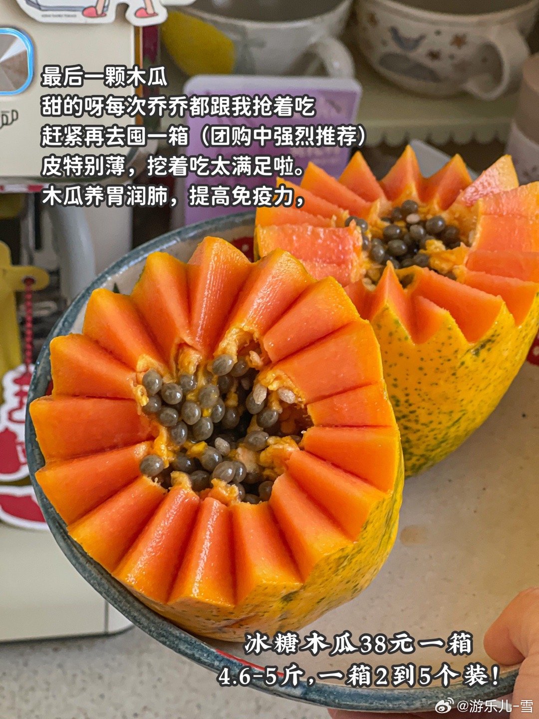 👏👏👏我吃过最甜的木瓜!皮特别薄,挖着吃太满足啦。木瓜除了美容,还促进消化,养胃润肺,提高免疫力,血糖高,减肥的姐妹都可以吃。唯一就是孕妇不要吃哦。