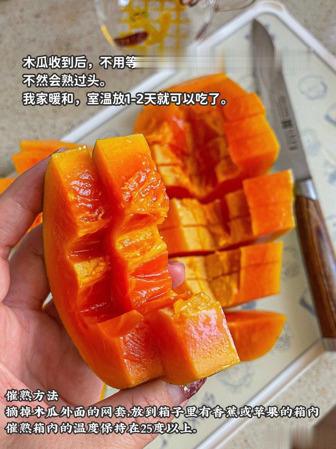木瓜收到后,不用等全黄,有一点点软就可以吃了,不然会熟过头。