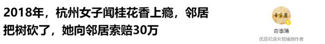 奇事簿《2018年,杭州女子闻桂花香上瘾,邻居把树砍了,她向邻居索赔30万》