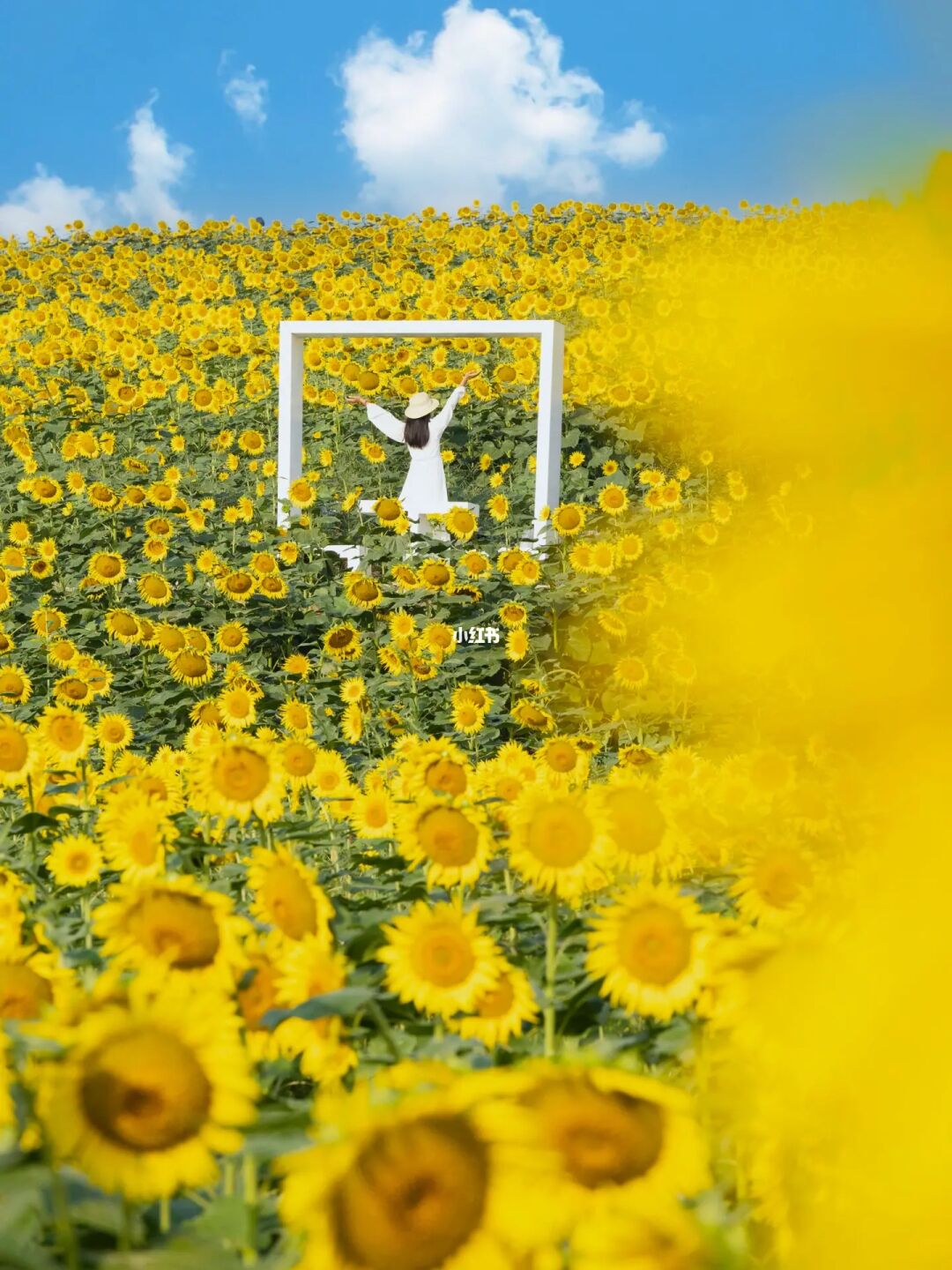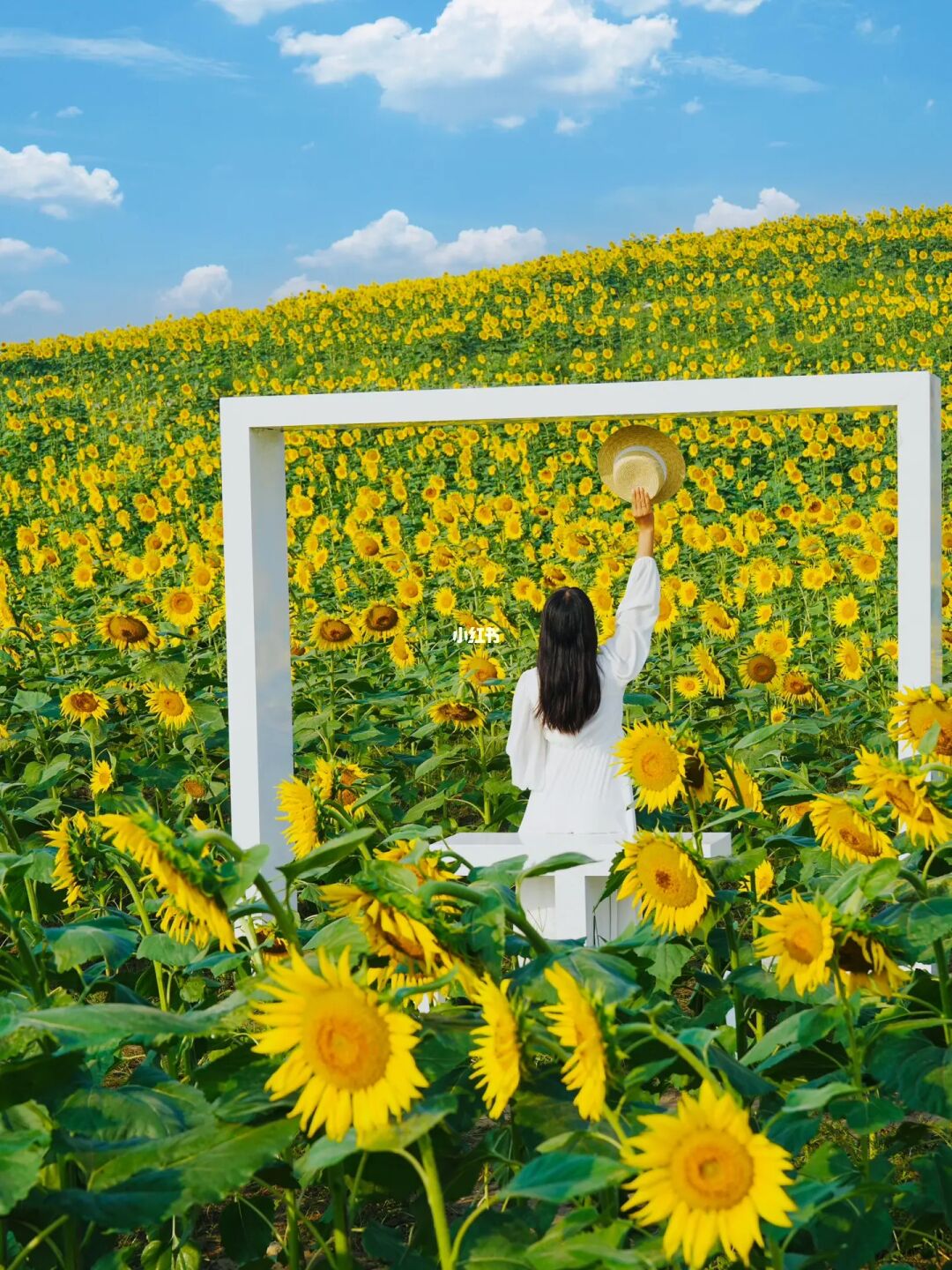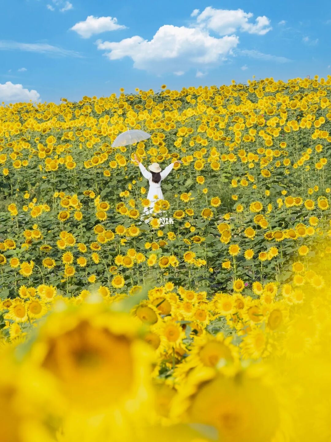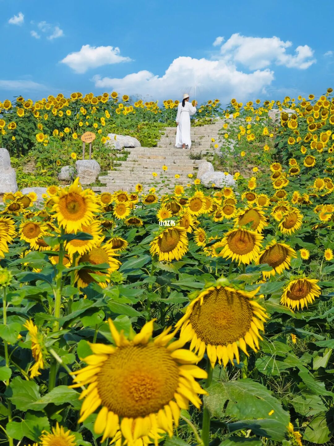 家人们听我说:这波向日葵🌻一定要冲 无论是阴天还是晴天☀️都很出片儿 超大一篇向日葵梯田🌻随便一个角度都好看 网红机位超过七点就需要排队了 so,想要不排队拍出包场的感觉最好六点到 花期预计一周左右,抓住这个周末安排起来吧❗️ 🌻地址:温榆河芸上梯田 🌻拍摄道具:透明伞、气球、篮子🧺都不错 🌻拍摄时间:2023年9月15日早7:00 🌻拍摄机位:从下往上仰拍or向日葵🌻做前景,人物站在石阶上拍(如图7) 🌻游玩建议:拍完向日葵🌻喜欢露营的小伙伴可以在露营区搭帐篷野餐哦~小朋友可以喂鸽子🕊️