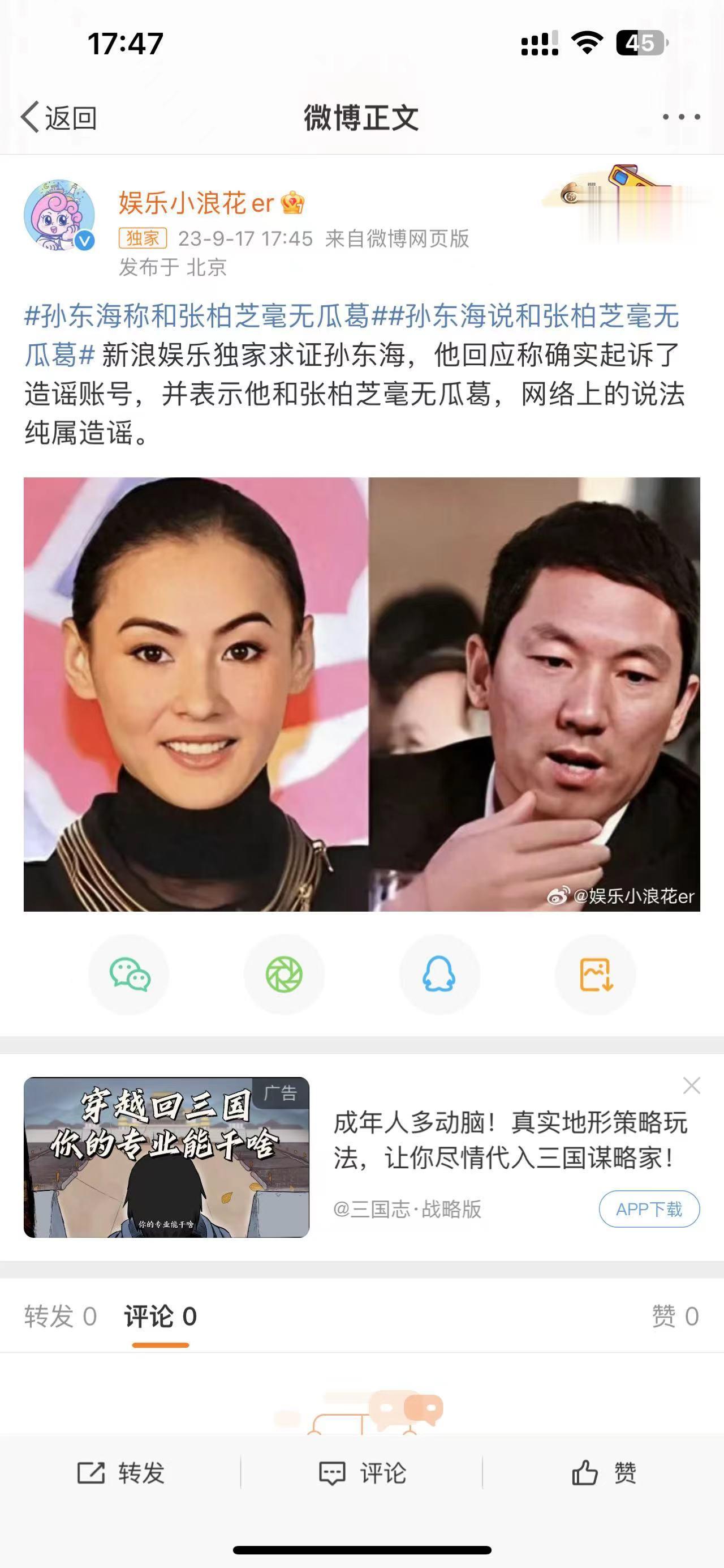 #孙东海起诉造谣者#孙东海对造谣者提起诉讼,这事做的太棒了,目前案件正在进一步审理,期待审判结果#孙东海方否认与张柏芝相关传闻#