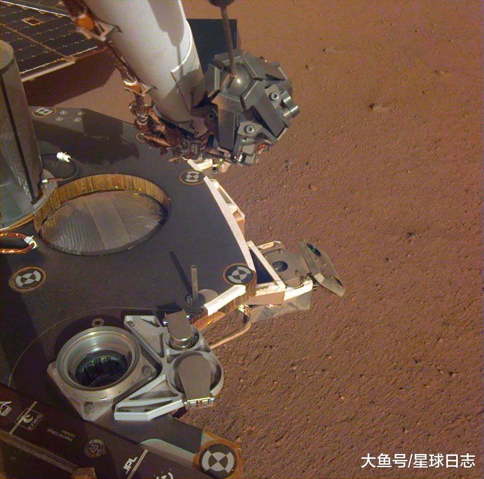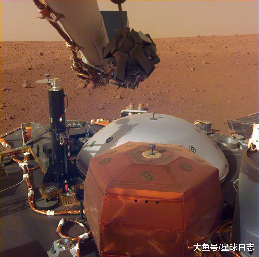 除了听到了火星的风声,洞察号登上火星后都忙些什么呢?首先,它降落后,拍了几张照片报平安,其中有火星的陆地、天空和海洋(沙土的海洋):