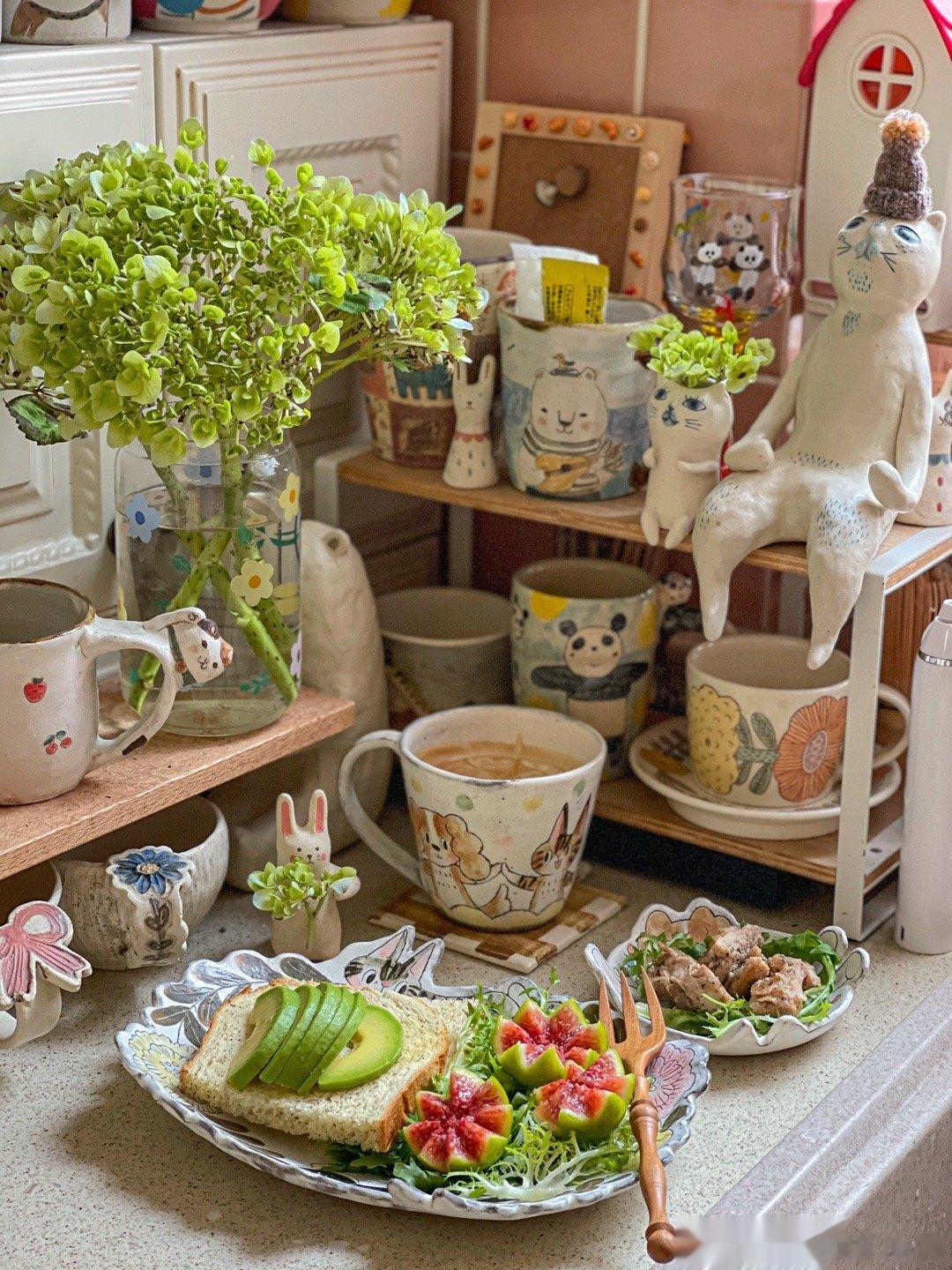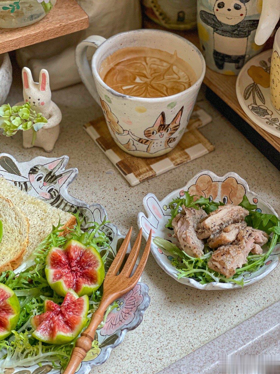 周二早餐:牛油果+红茶吐司+嫩嫩鸡腿排+拿铁