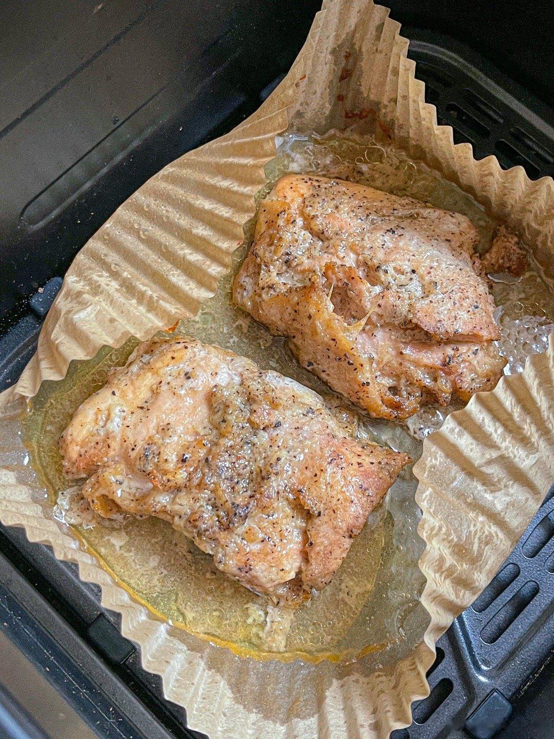 用空气炸锅烤鸡腿排(200度10分钟),再烤吐司片(180度5分钟)超级好吃还省事。