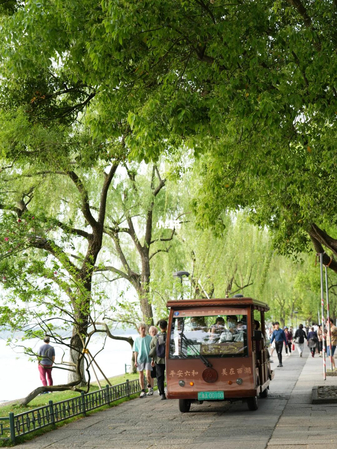 西湖很大,可结合游船+观光车+骑行