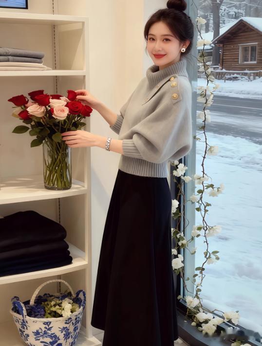 灰色毛衣配黑裤子,基础款也能穿出高级感。颜色低调不抢眼,但胜在质感好。适合喜欢简约风的女生,不需要花哨,干净利落才是真,经典不过时。