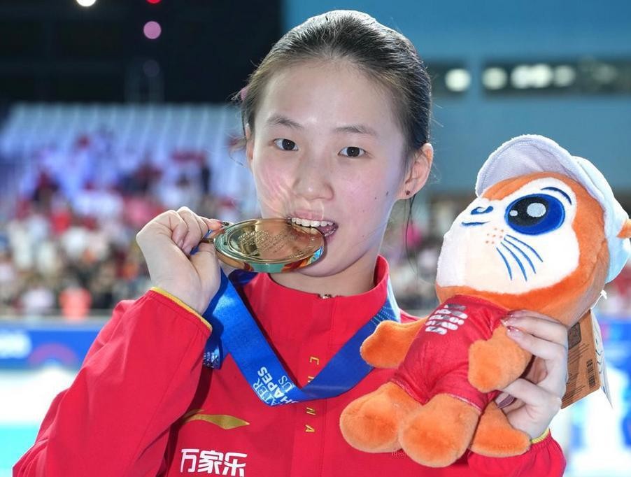 要说陈芋汐,那真是没得讲。这次比赛,队里另一个猛将全红婵没去,她一个人把大梁扛了起来。就说那个女子10米台,她稳稳当当又拿了第一,这一下,她就成了历史上头一个,在这个项目上连着拿了四回世界冠军的人!管她叫“十米台女王”,真是一点都不过分。算上别的项目,她这次也是三块金牌稳稳到手,表现硬气得很。
