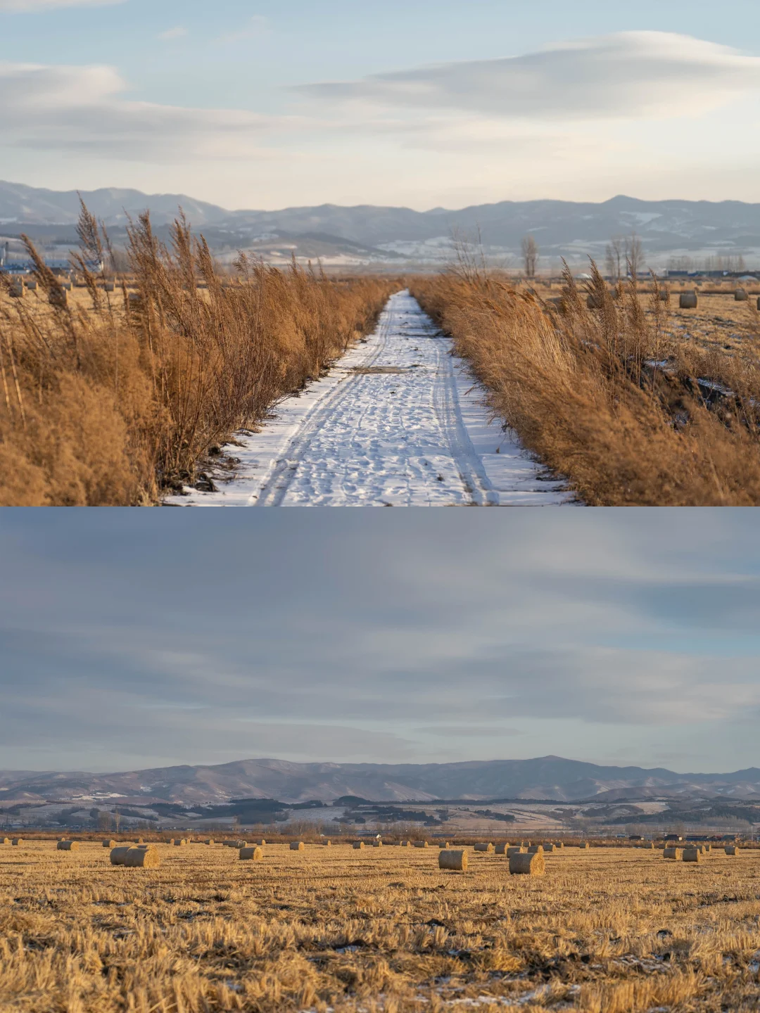 这里不是呼伦贝尔 也不是新疆 而是我们从老里克湖 自驾去延吉的路上 发现的一片油画般的草卷 . 夕阳把田野染成金黄色 人生第一次见到一望无际的草卷 仿佛电影里的场景 在这个边陲小镇 我们遇到了攻略计划之外 令人震撼的美景! . 📍和龙市城南村附近 🚗距离延吉大约1h车程 . (从老里克湖自驾前往延吉市,不要走高速,选择G334国道,沿途就可以看到这片麦田) .