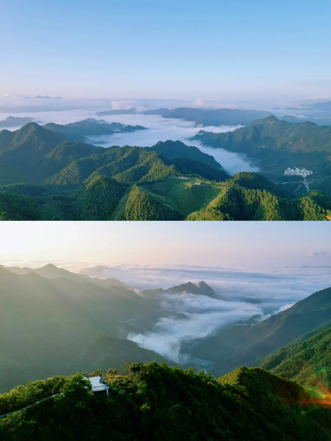 若不是亲眼所见,真不敢相信,杭州居然有这么美的仙境,云海日出美爆了!台风过境后的惊喜,惊现湛蓝的天空和棉花糖一样的云朵☁,简直是摄影爱好者的天堂!不用去黄山,在千岛湖海拔888米的高山⛰上,就能欣赏到免费的云海日出🌅