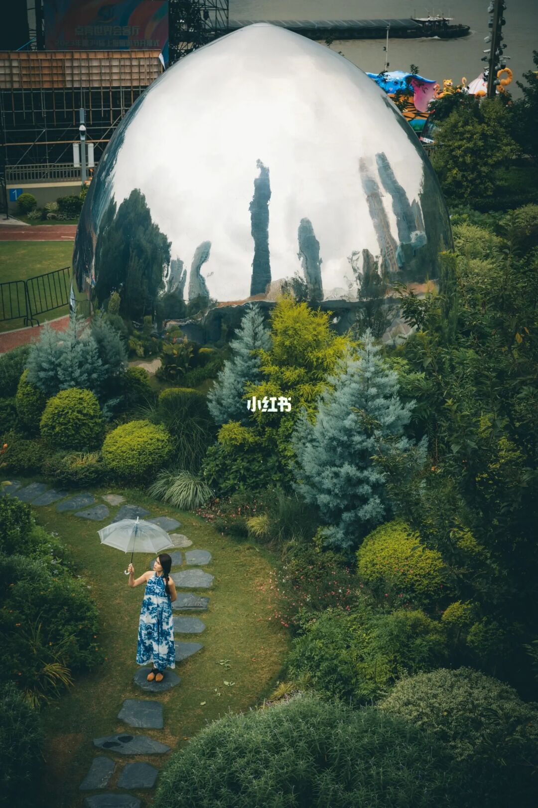 (北外滩滨江绿里的特色建筑,可以反射四周的高楼,也能拍到和东方明珠合影。如图6)
