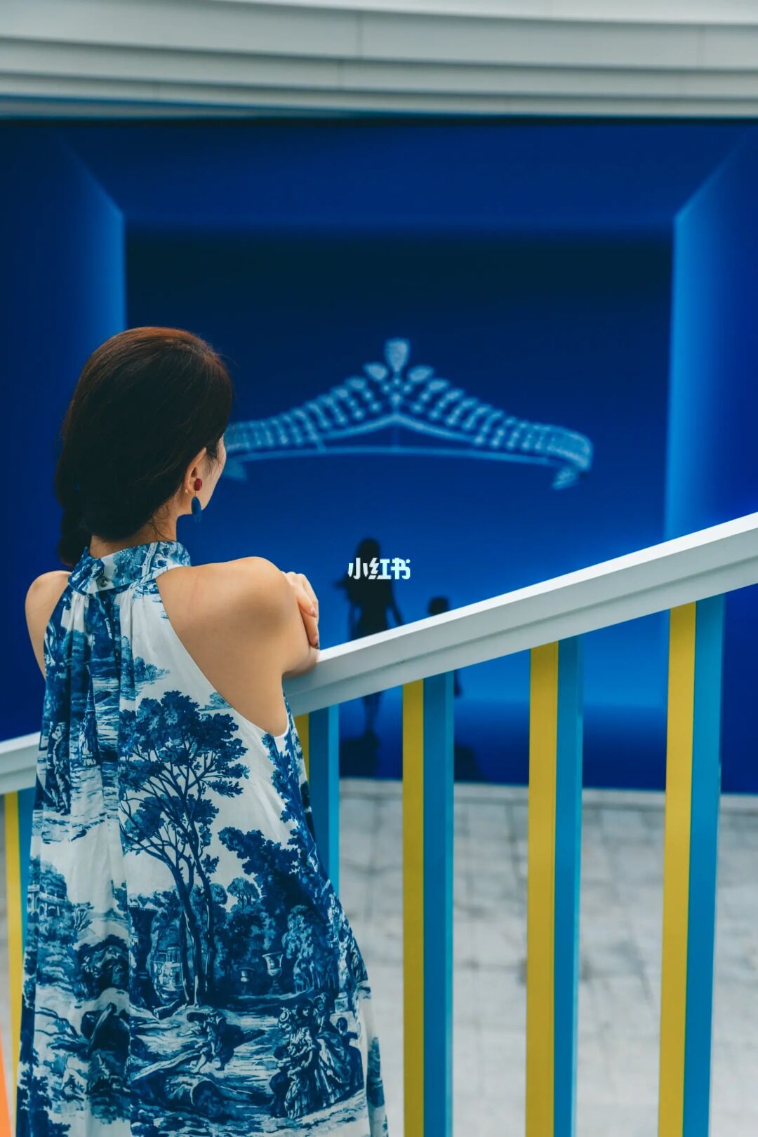(沿着虹旋梯往下,是一个下沉的七彩🌈空间,展前广场很有电影感,里面正在举办尚美“TIARA DREAM冠冕绮梦”大展,门票不高,值得一看如图4)