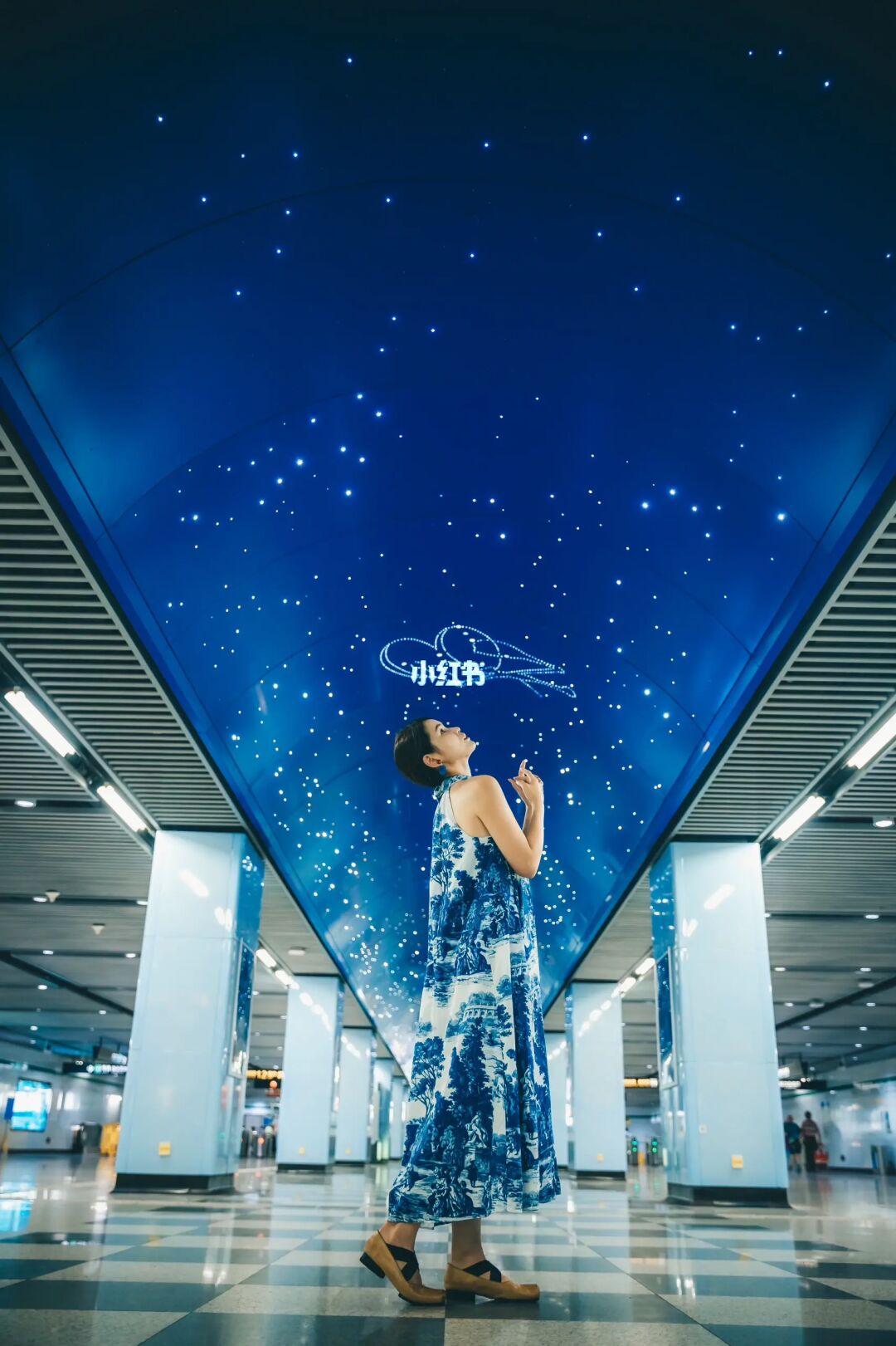 (闪烁的弧形吊顶上复刻了的12星座图。如图8)