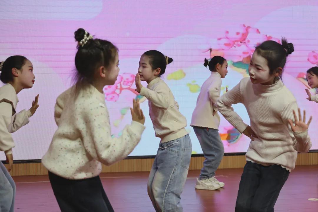 当《马萨基》的节奏响起,孩子们身姿舒展,舞步轻巧如风,蓬勃朝气与欢快韵律在跃动中交织;而《我的情绪小怪兽》则温柔低语,孩子们用细腻的肢体语言与流转的眼波,将抽象情绪晕染成灵动的舞姿。从初时的羞涩到最终的从容绽放,他们在重复练习中打磨默契,在舞蹈韵律里学会表达与释放,让成长的光芒在舞动中灵动盛开。