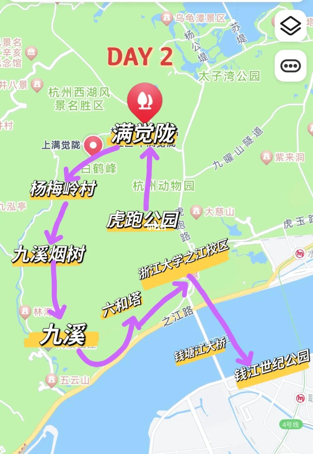 虎跑公园-满觉陇-杨梅岭村-九溪烟树-浙大之江校区-钱塘江大桥-钱江世纪公园