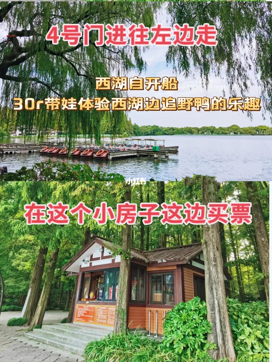 [三R]然后徒步到曲院风荷4号门,花30r租一辆西湖电动自开船,带娃体验西湖追野鸭的乐趣,人少景美