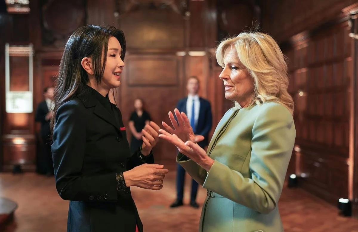金建希去了美国,参加联合国大会。 她脸部光滑白嫩,像是剥壳鸡蛋。