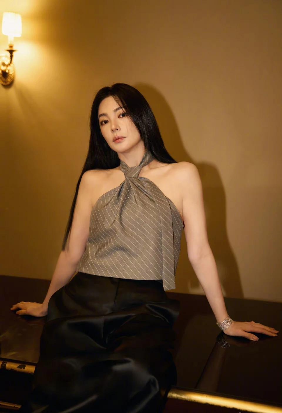 天哪,领带当内衣,又有肚兜的画风。 张雨绮太会穿了吧! 這套後面居然只有一條帶