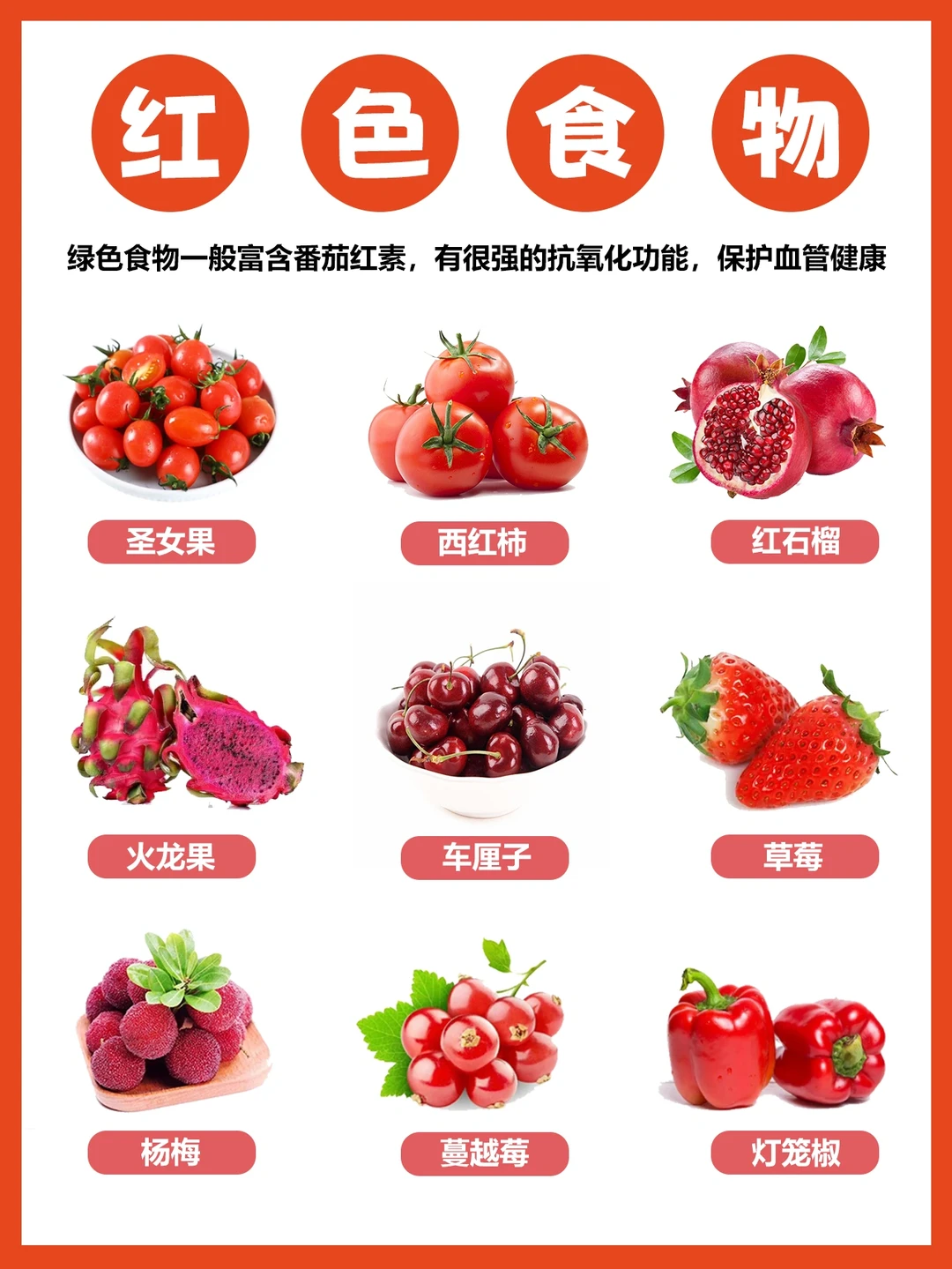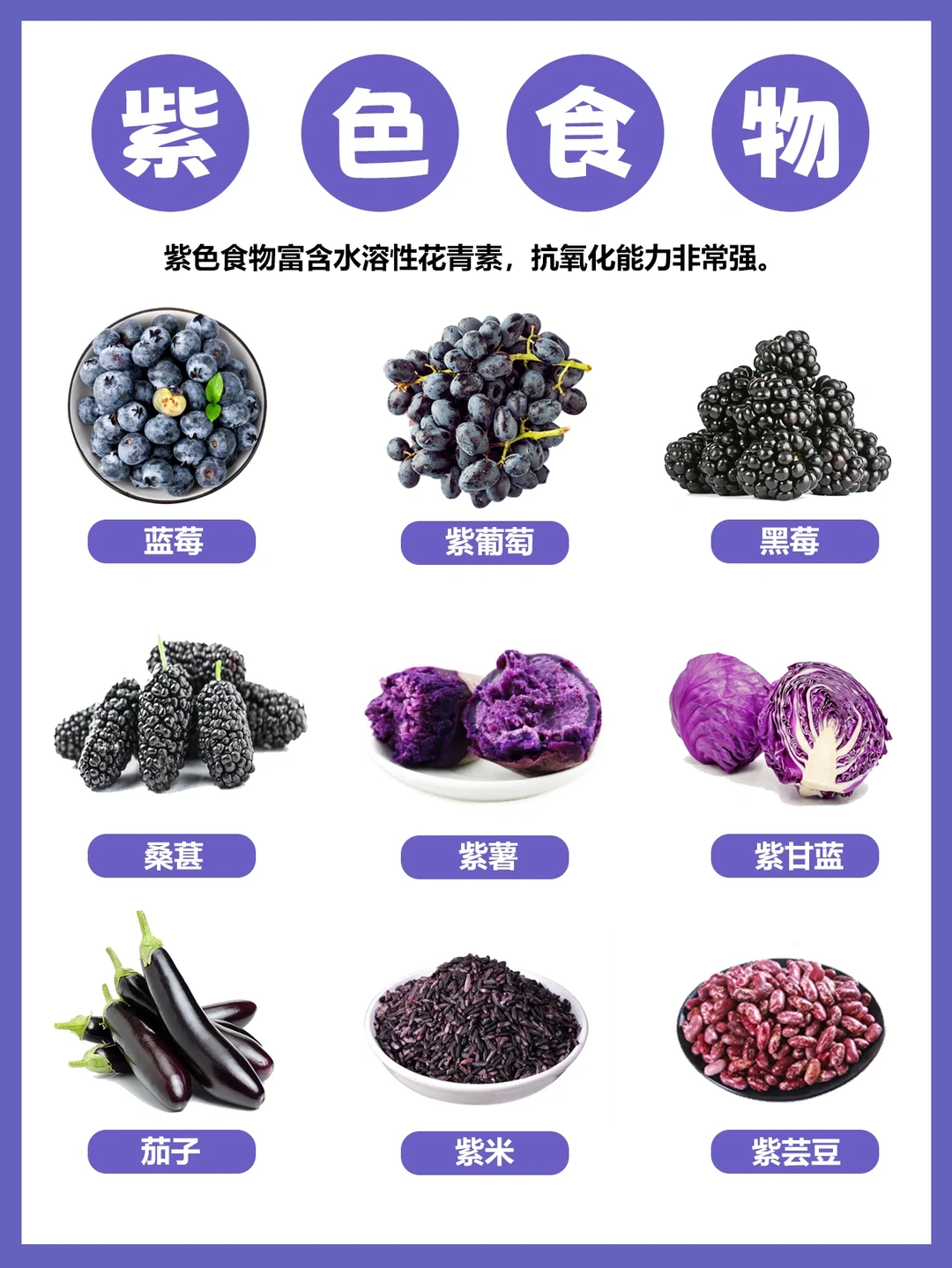 例如紫色果蔬富含花青素,红色果蔬富含番茄红素,绿色的果蔬富含叶青素,黄色果蔬富含叶黄素,白色果蔬富含蛋白质,图中的彩虹食物给你们做参考~