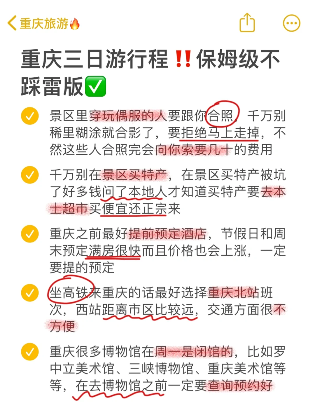 2️⃣最好选择大酒店或者连锁酒店,重庆部分酒店设施老化,还有怪味,建议大家预定时查看入住的客人对酒店的评价,再选择酒店