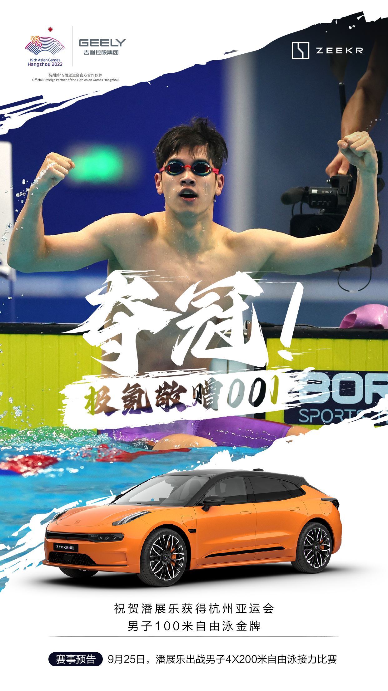 #致敬中国冠军#恭喜亚洲飞鱼潘展乐夺得亚运会100米自由泳金牌!成为亚洲历史上首位游进47秒以内的运动员!实力与颜值并存,作为极氪亚运突破大使还与极氪隔空比Z!默默展望一下,潘展乐的这一次的金牌数能赶上极氪001的四项吉尼斯纪录数量吗!期待极氪和年轻冠军们一起强者顶峰相见!#杭州亚运极氪排面王#
