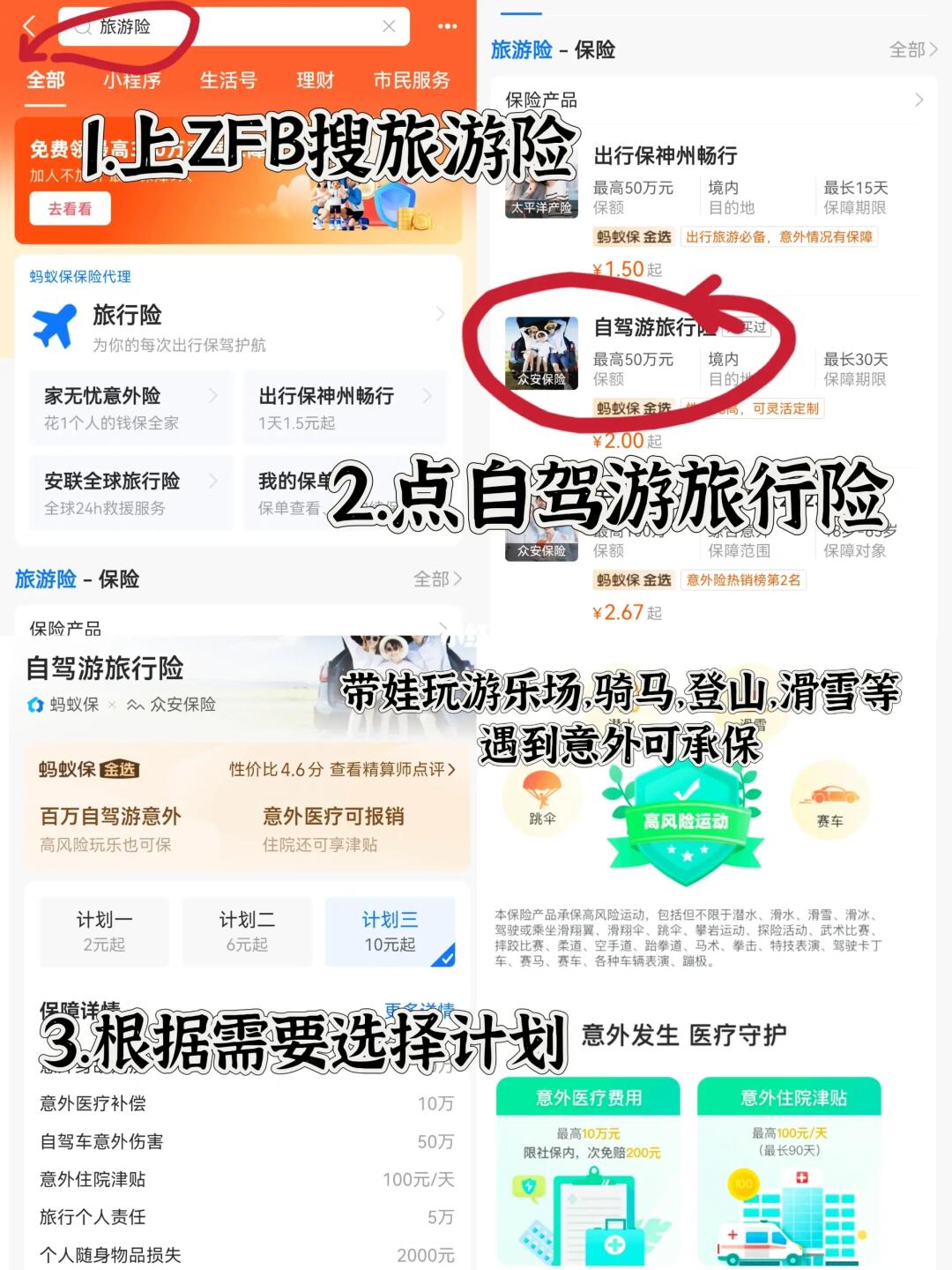 如果不是自驾游,也有其他旅游保险可选择。支 付 宝搜“旅游险”能找到