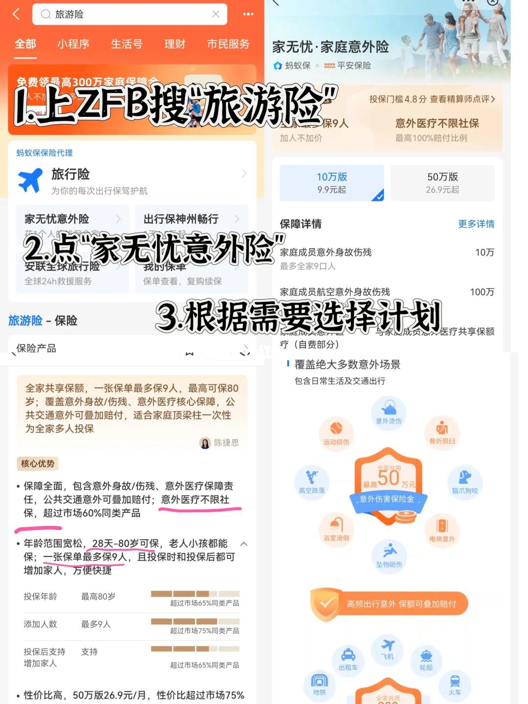 👍除了旅行险,我们全家还都投保了【家无忧 家庭意外险】,平安保险公司承保,保障意外风险。之前我给全家买保险都是单独买,不是漏掉这个就是漏掉那个人 ,现在只需1人的钱保全家最多9人,涵盖绝大多数意外场景,而且每月9.9起,性价比高