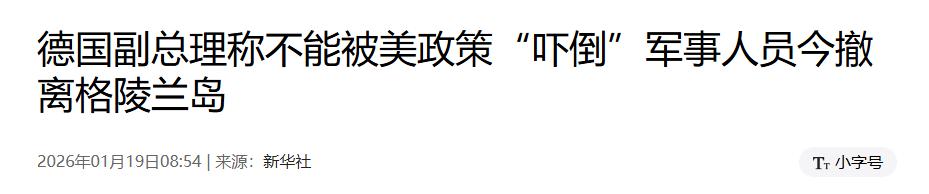 德国副总理称不能被美政策“吓倒”军事人员今撤离格陵兰岛——新华社