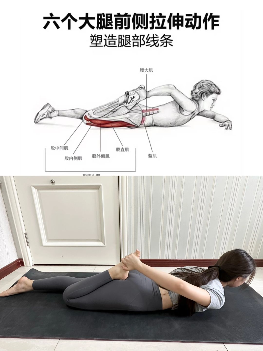 大腿前侧突出的姐妹们,一定要试试这5个动作! 这是我一直在做的动作,可以很好的拉伸到大腿 肌肉,改善假胯宽和骨盆前倾 每个动作40s,练2组! 大概坚持半个月到一个月就可以有效果