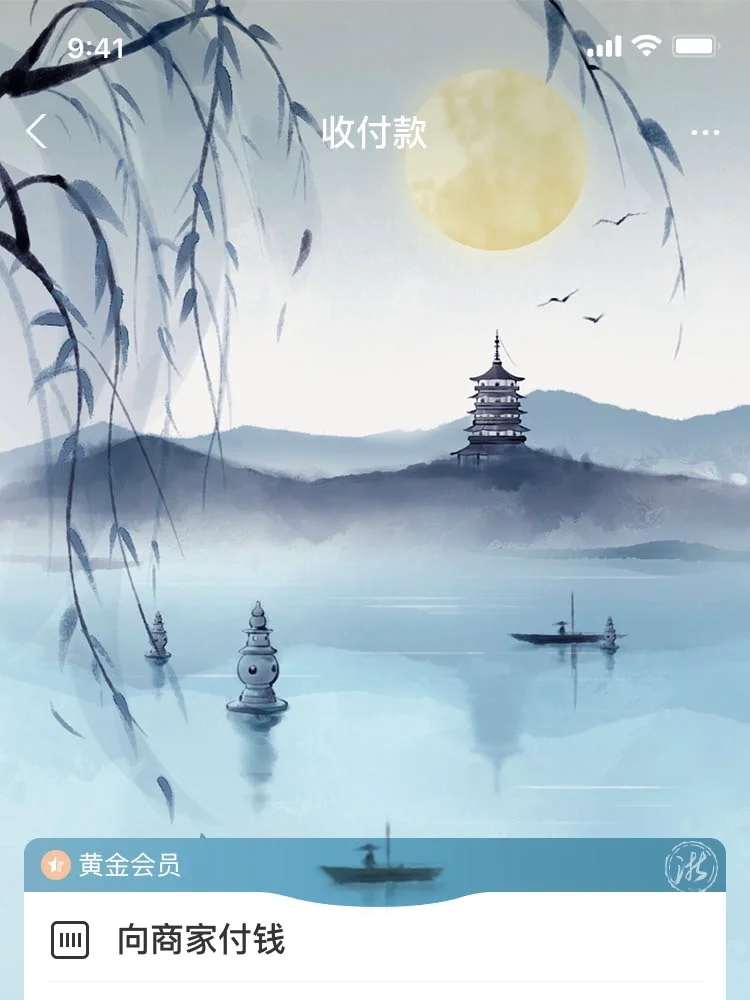 中秋临近,上zfb 🔍「月是故乡明」,即可Get三潭映月同款付款码皮肤哦,每个城市都有对应的皮肤,插画画得真好看呀[赞R]