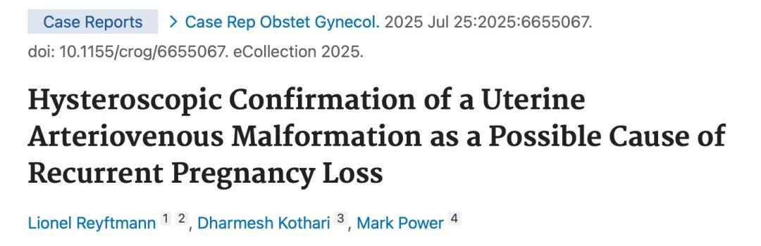 Hysteroscopic Confirmation of a Uterine Arteriovenous Malformation as a Possible Cause of Recurrent Pregnancy Loss. Case Rep Obstet Gynecol. 2025 Jul 25;2025:6655067. doi: 10.1155/crog/6655067.