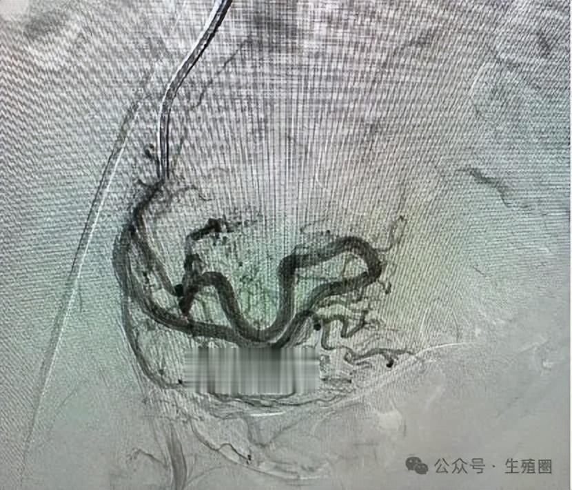 他们决定为她行动脉栓塞术,这是一种微创介入治疗。医生从患者大腿根部的血管插入一根细导管,在X光引导下,将导管精确送到给这个血管团供血的子宫动脉分支。