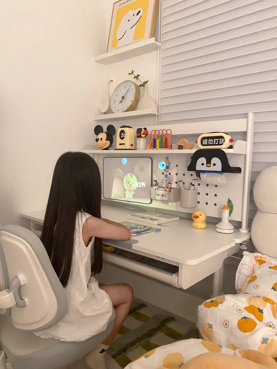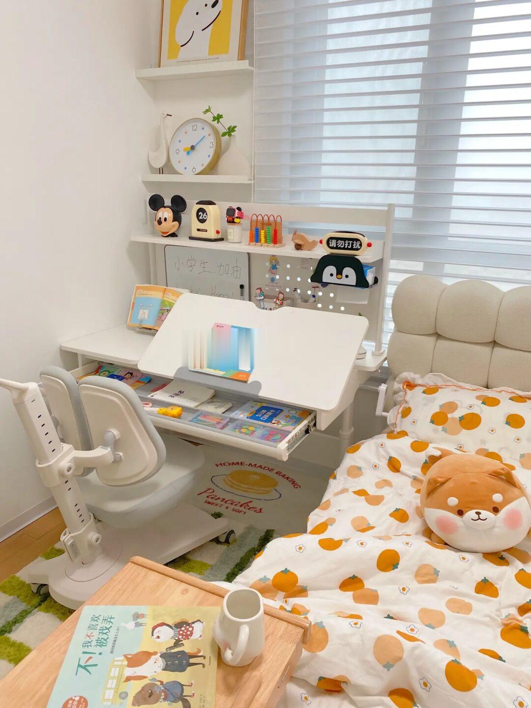 这些基本就塞满了房间,为了给女儿营造良好的学习氛围,尽量布置的温馨舒适。值得一提的是给她选的拉特丽护目学习桌,还真做不少功课。
