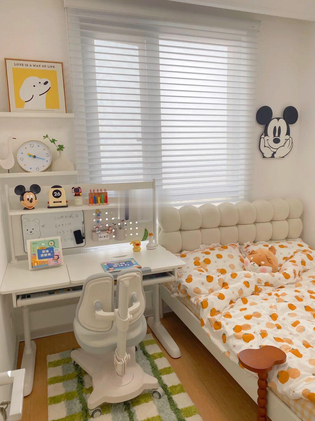 卧室只有2.7*2.7m,因为要做儿童房,怕有味道就只刷了白墙,没做榻榻米;而且我家装修晾干半年就搬进来了,所以对儿童房的家具选择很在意。