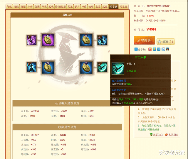 来自【北戴河】服务器的一进阶内功武当,评分42万,面板也是不错:血量108万,蓝量7.6万,内功攻击12万,命中10万,闪避2.6万,会心攻击1837,会心防御344,主玄攻击16927!