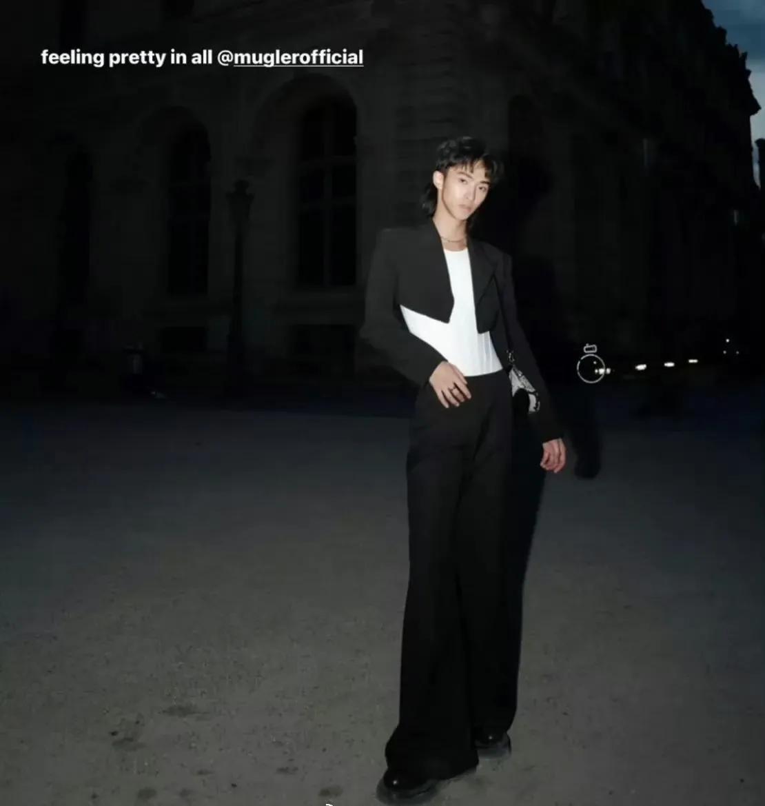 #妙笔生花创作挑战#伊能静儿子哈利穿露背装裙子参加时装周! 近日,伊能静儿子哈