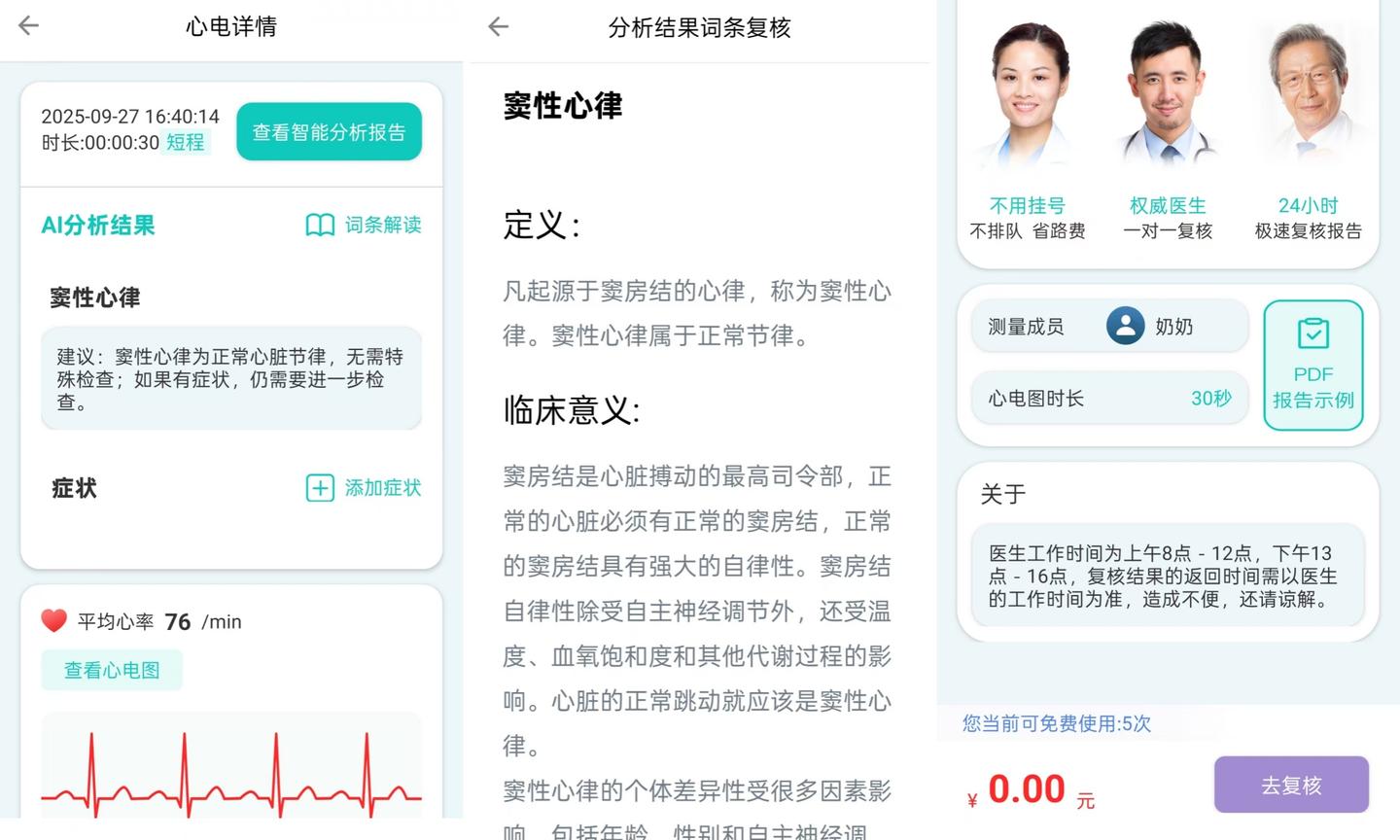 如果需要,也可以在App界面上选择专业医生复核,按次收费。